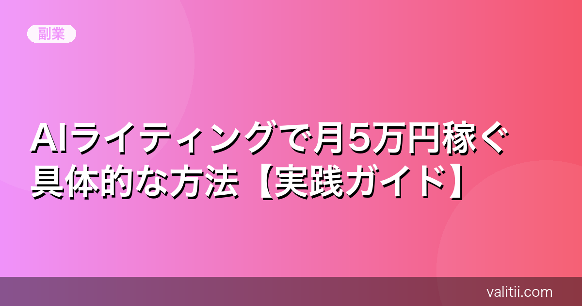 本記事では、AIライティングを使って月5万円を稼ぐ具体的な方法を、副業初心者の方にもわかりやすく解説します。必要なツール・案件の探し方・収益化のコツまで網羅しているので、ぜひ最後までご覧ください。